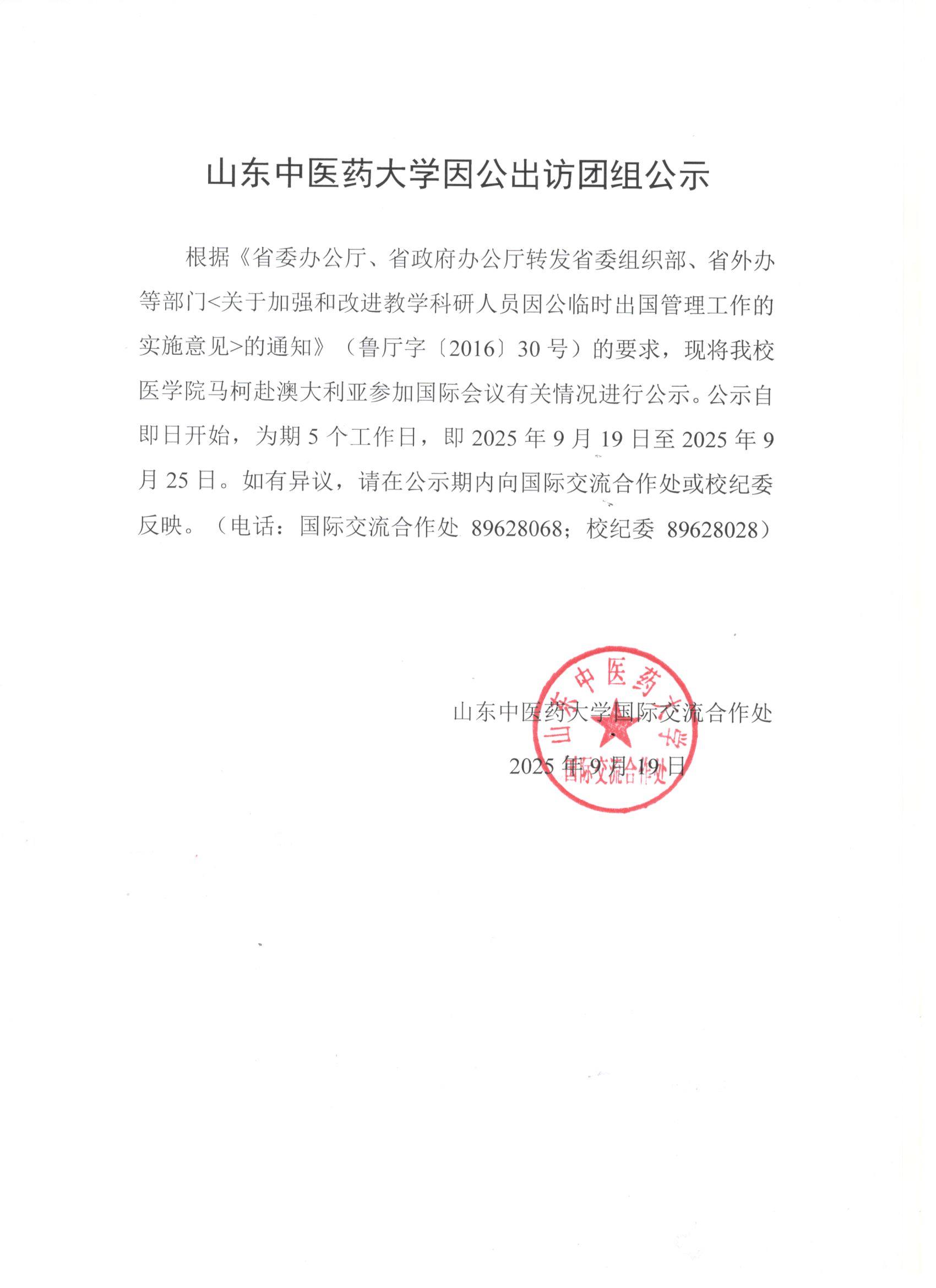 医学院马柯1人因公赴澳大利亚团组信息公示
